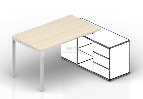 Стол для крепления к сервисной опорной тумбе STS126FU №31214 - столешница: дсп 25 мм, кромка: пвх, покрытие: меламин, стекло: тонированное, матовое.